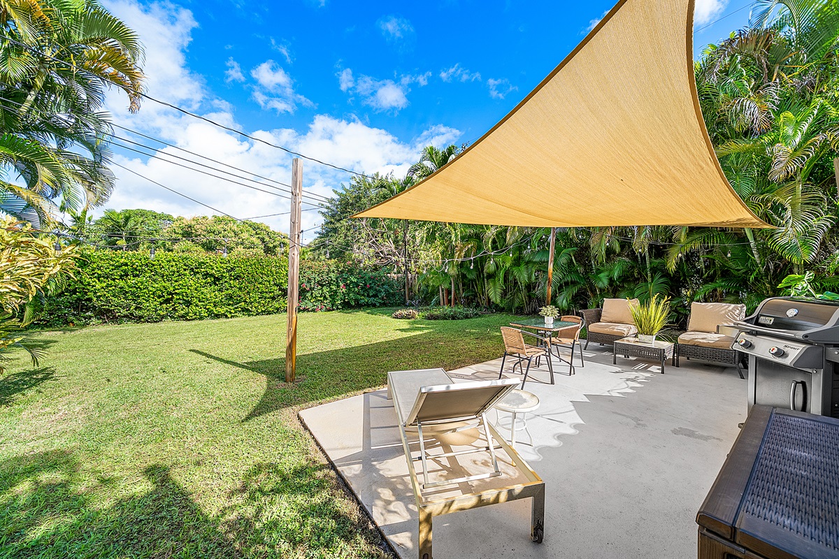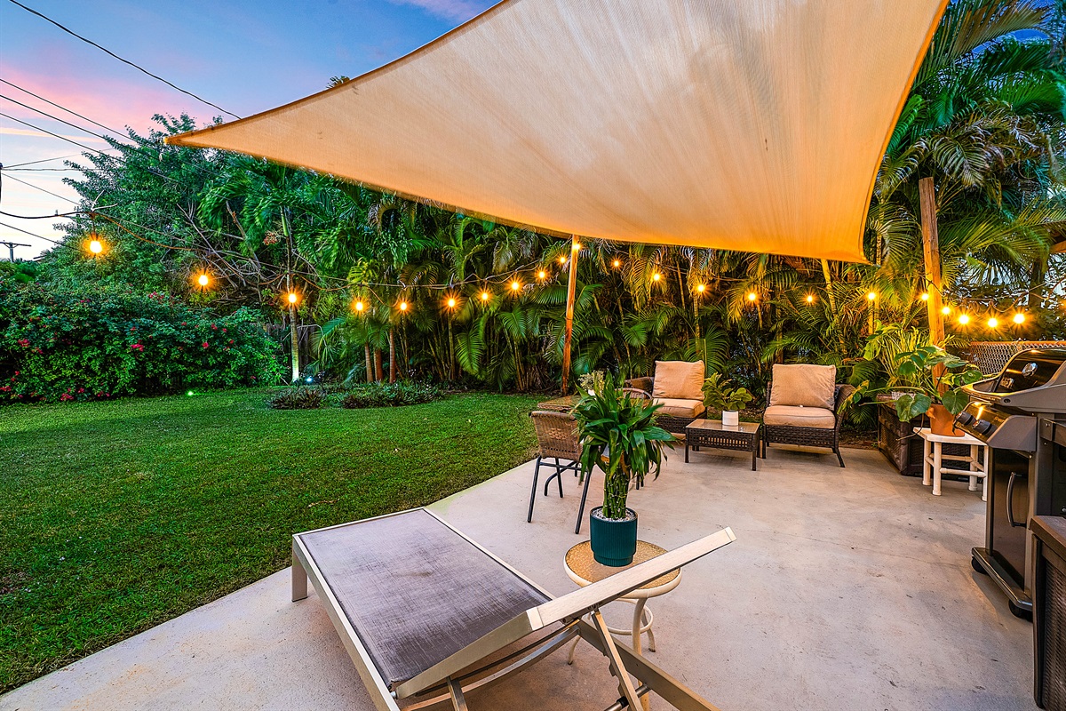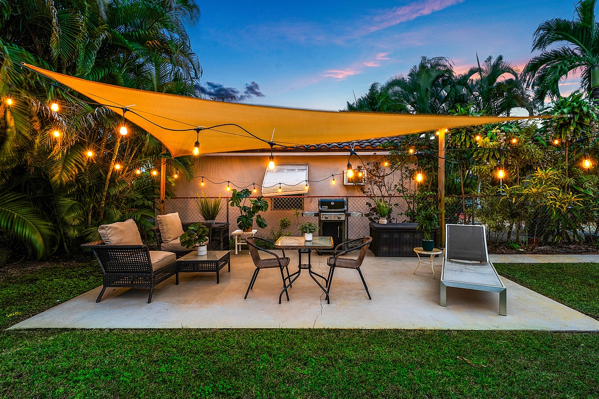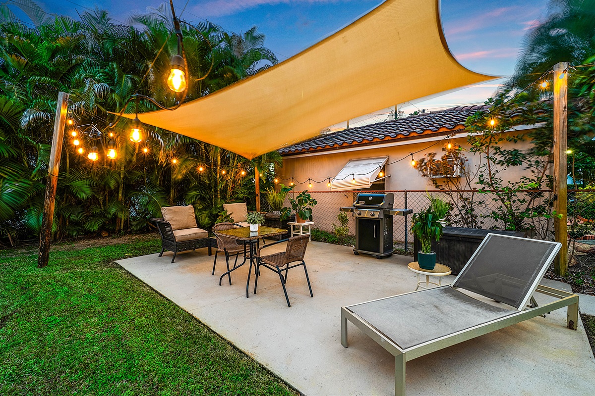 Patio: Step outside to your lush private patio, a tranquil oasis for outdoor enjoyment. Lounge on the comfortable seating under string lights or fire up the Weber grill for alfresco dining. This serene space is perfect for sipping morning coffee or unwinding in the evening with a cocktail.