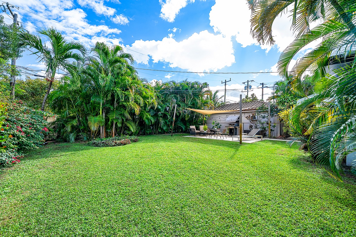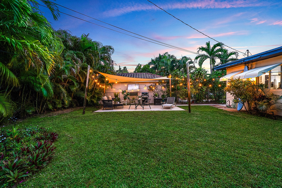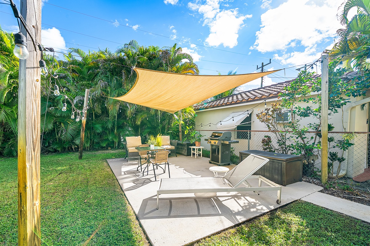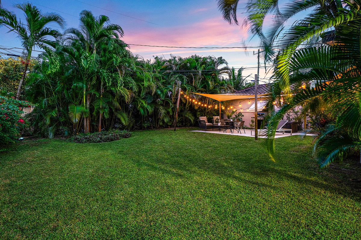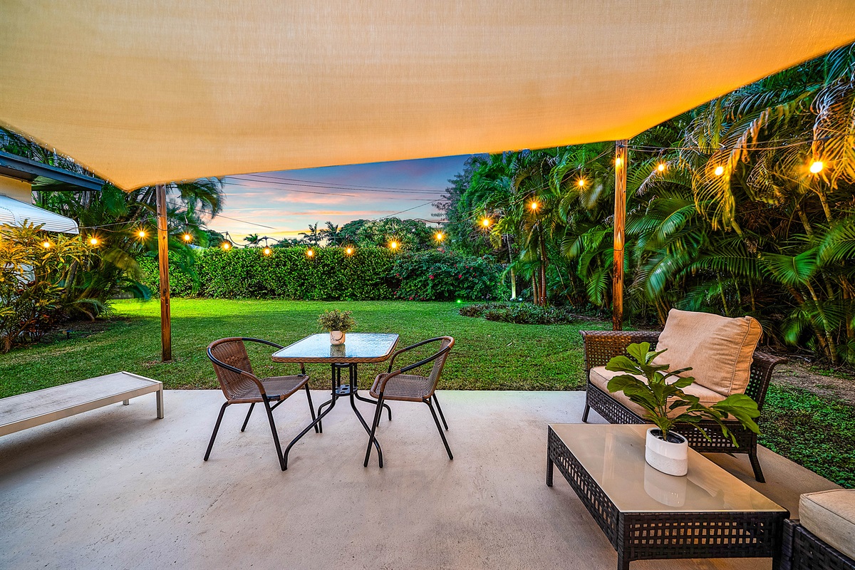 Patio: Step outside to your lush private patio, a tranquil oasis for outdoor enjoyment. Lounge on the comfortable seating under string lights or fire up the Weber grill for alfresco dining. This serene space is perfect for sipping morning coffee or unwinding in the evening with a cocktail.