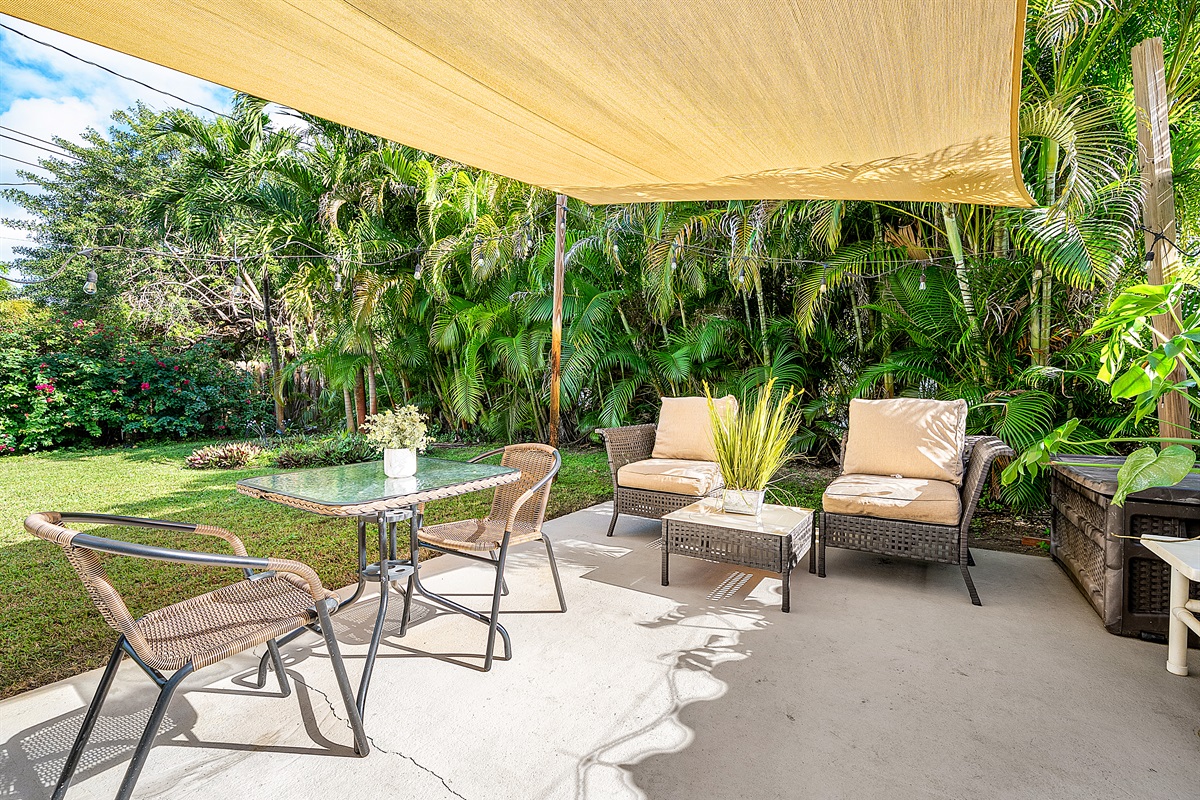 Farm Style, Courtyard, Bar Cart, BBQ- $1 rides to Beach & DT Coastal Serene Courtyard, Lush Garden, BBQ & Bar Cart – $1 Rides to Beach