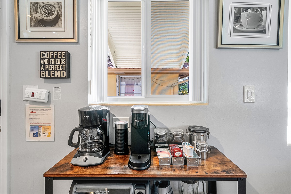 Coffee lovers are in for a real treat...: a full array of coffee selections including Espresso, Decaf & Regular paired with various types of creamers, sugar, honey, teas & cinnamon will be sure to delight even the most discerning latte enthusiast.