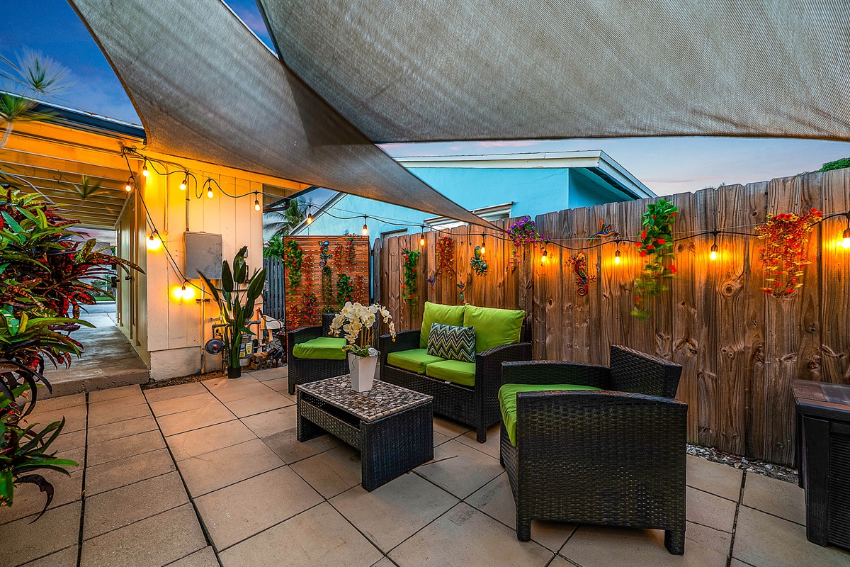 2 Bedrooms • 1 Bathroom 1 Bath • Sleeps 1-6Ranch-style 2BR retreat just blocks from the Intracoastal, shops & dining, 10 min from PBI, and only $1 RideCircuit rides to the beach & downtown (pickup at the house!). Sleep soundly in a King bed, refresh in the spa shower, play 150 games on the Legends Arcade, or mix cocktails at the stocked bar cart. Unwind with guitar, books & board games, grill & dine al fresco under bistro lights, then pamper yourself with robes, slippers, and complimentary snacks & drinks.